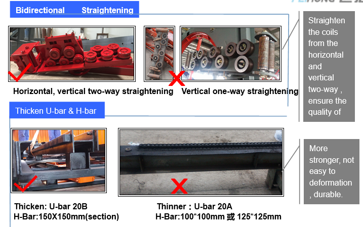 11. बीआय-दिशानिर्देशी सरळ बोट उच्च सामर्थ्य मिश्र धातुची सामग्री, उच्च शक्ती, विरोधी-पोशाख बनविलेल्या आणि परिधान केल्याचे आयुष्य सुधारण्यासाठी बनविले जाते, कोयर्सच्या क्षैतिज / उभ्या बिडरेक्शनल समायोजनामुळे रीबर पिंज्याचे गुणवत्ता सुनिश्चित होते.